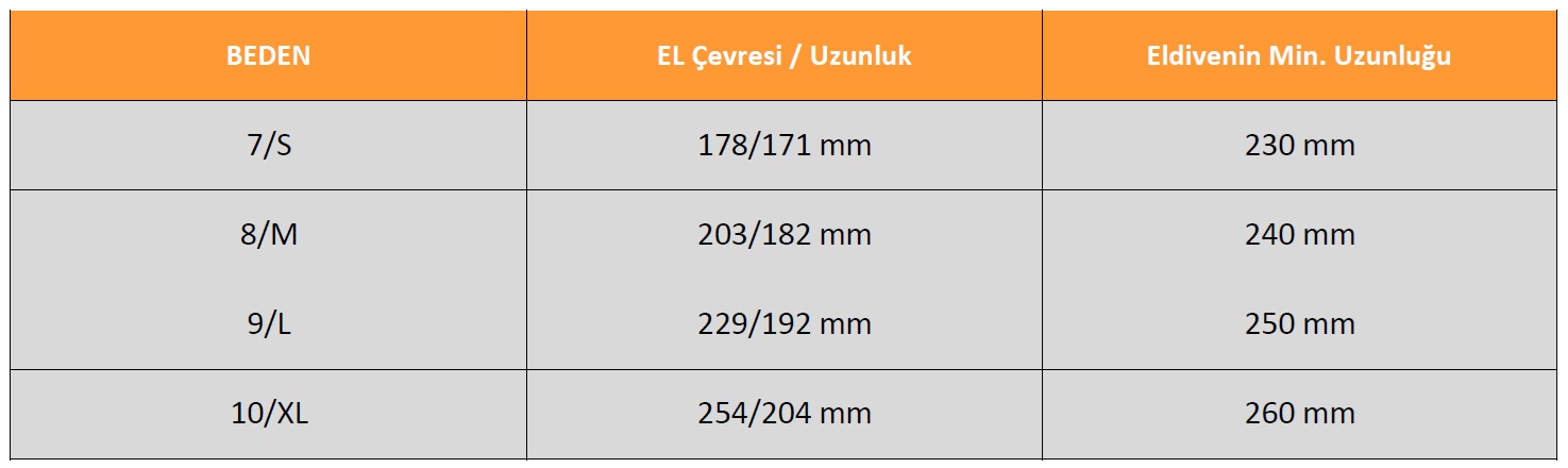 • Elastik Bileklik: Eldiveni sabit tutmak ve dışarıdan gelen maddelerin eldiven içine nüfuz etmesini engellemek üzere tasarlanmıştır.